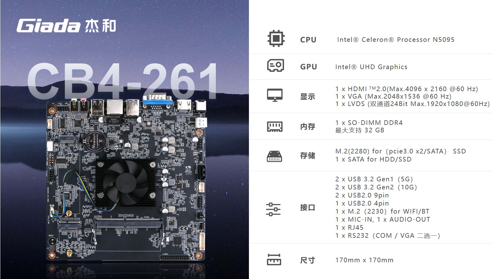 一款高性能的主板是终端机稳定运行的关键,基于Intel Jasper Lake平台的N5095芯片,杰和科技推出了一体机专研主板CB4-261。
