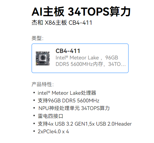 近日,杰和科技正式推出了AI一体机主板——CB4-411,进一步丰富了一体机主板产品线,它凭借卓越的性能和丰富的应用场景,受到了广泛关注。