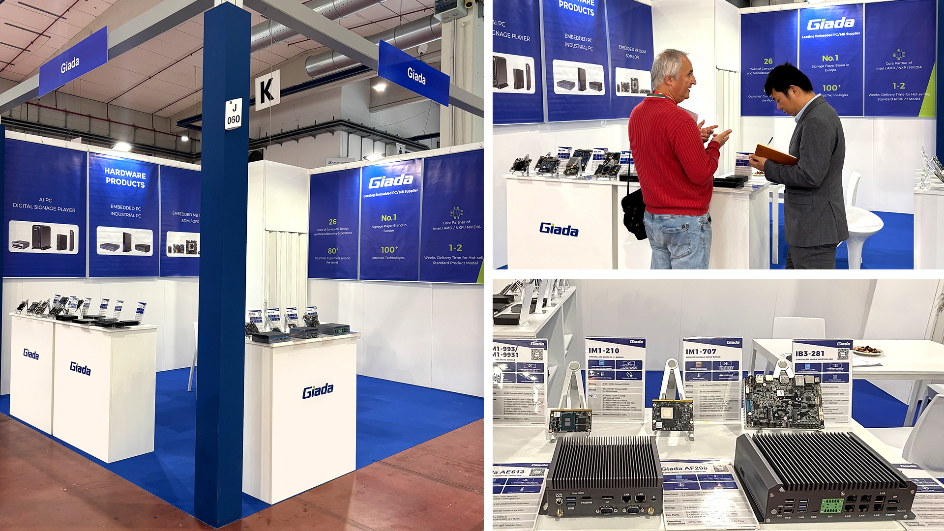 作为德国数字标牌市场的领先品牌,Giada的影响力正持续扩展至意大利等欧洲国家。此次我们从深圳跨越一万公里而来,展示了适用于智能工业、零售、交通、自动化控制、数字化服务、智慧教育等多场景的产品组合。