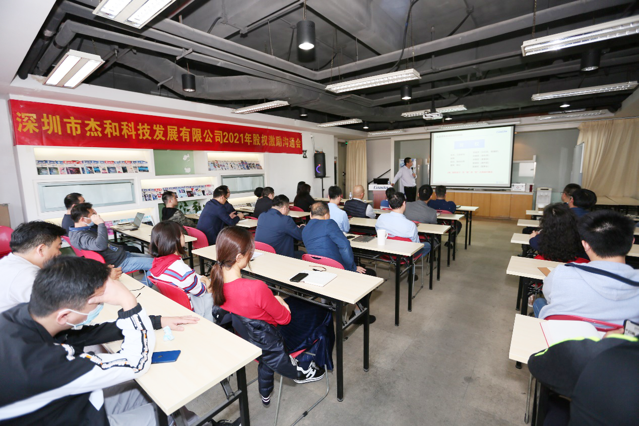 2021年2月5日,杰和科技邀请了来自专注提升资本价值的华扬资本合伙人李总,为公司30多位管理者及骨干员工进行了公司股权激励制度的专题讲解与交流。