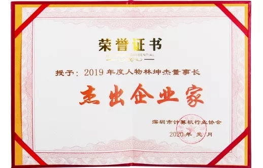 2020年1月7日,深圳市计算机行业创新成果发布暨2019年度表彰大会在南山科兴科学园隆重举行。杰和科技董事长林坤杰先生获评深圳市计算机行业“2019年度杰出企业家”。