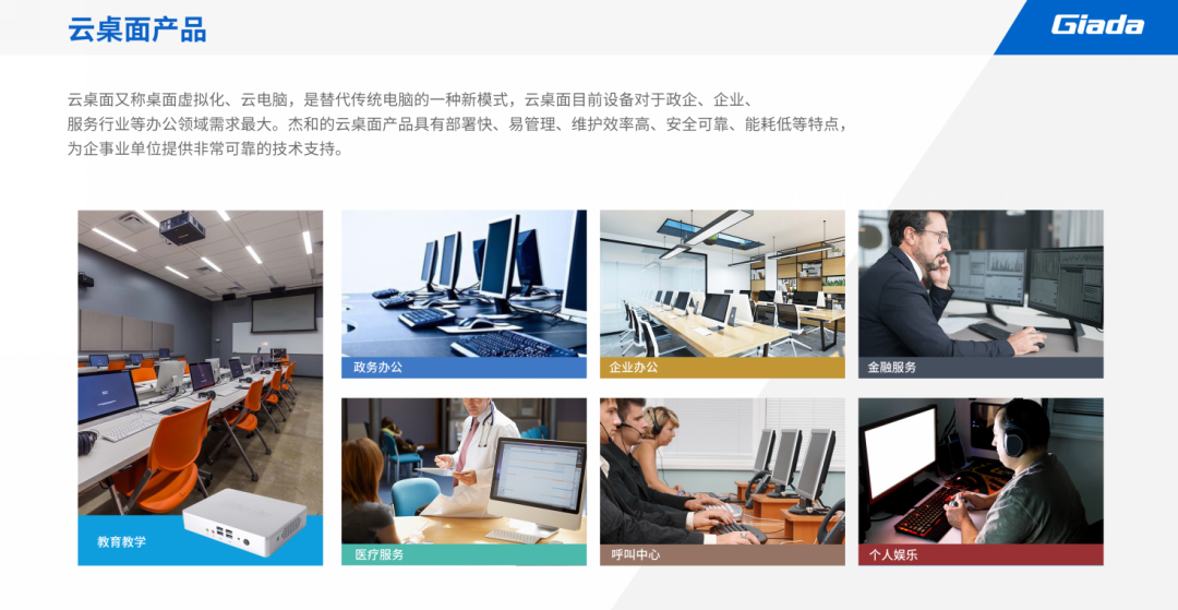 随着各个行业的业务复杂程度不断提高,不同行业对云终端也提出了更高的要求,Giada杰和科技云终端产品VT26,具备便捷管理部署、性能优秀、扩展性强、安全性高等优势,在日常办公、视频娱乐等场景下,满足用户性能需求的同时,提供极佳的使用体验。