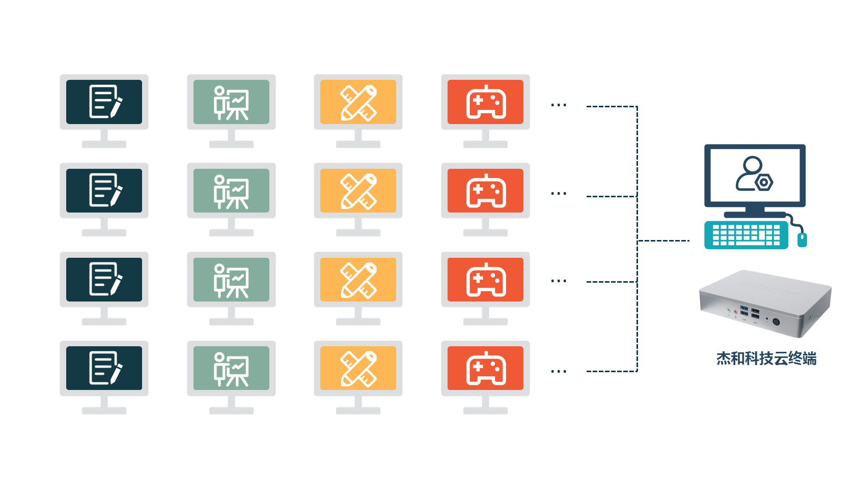 云电脑的应用不局限于企业,亦可在政务、教育、医疗等多种应用场景广泛使用,针对不同的场景适配不同的云终端产品,实现资源利用和性价比的最大化,但不会选又成为用户需要面临的新困扰。杰和对用户的需求进行了充分的调研,云终端系列产品针对不同需求和应用场景提供了多种解决方案,以产品的多样性实现全场景覆盖。