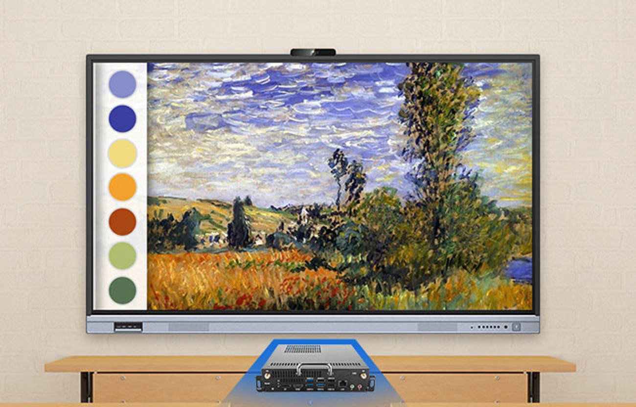 在传统的教学模式中,教学设备老旧,设备功能单一,不能满足目前教学形式多样化,功能要求更丰富的需求,而应用了杰和OPS可拔插模组的智慧黑板,可以实现传统书写板与电子白板之间自由转换,使教学呈现“沉浸式+体验式”的特点,提高趣味性和可视化,让教学更生动,学生学的更轻松,有效提升教学质量。