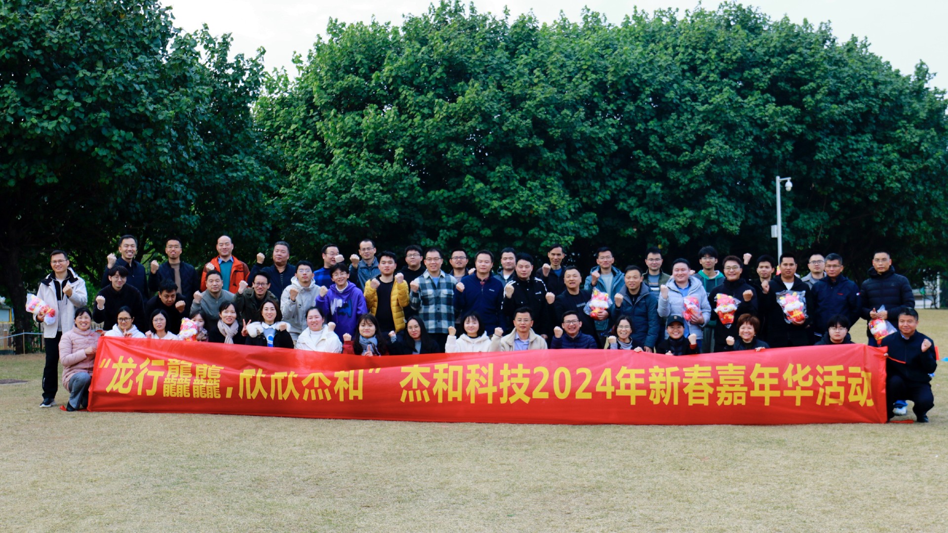 2024年1月28日杰和科技举行了以“龙行龘龘,欣欣杰和”为主题的年会,全体领导和员工共同出席,回顾公司25年来的奋斗历程,庆祝这一年的奋斗成果,展望了公司未来的发展方向。