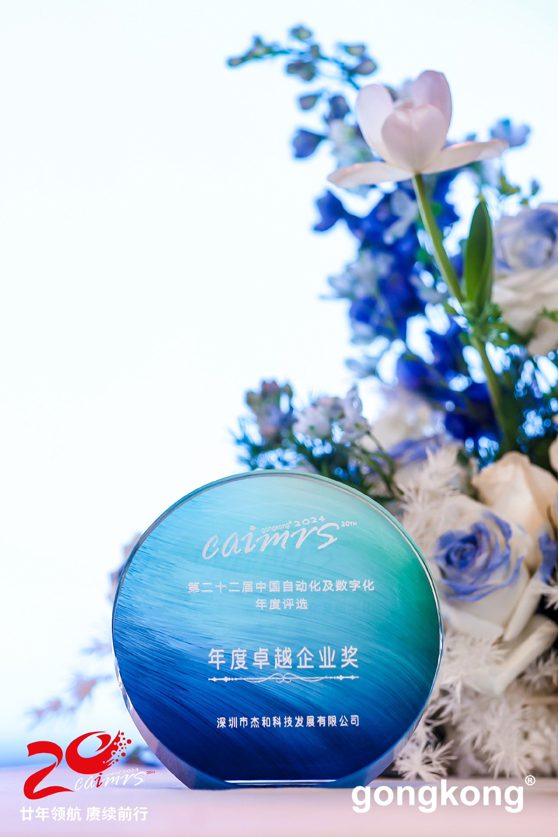 年会当晚颁发了备受瞩目的大奖“年度卓越企业奖”,每年中国工控网都会寻找出在自动化和数字化转型上表现出色的企业,表彰这些通过技术革新推动业务增长、优化操作流程,并在激烈的市场竞争中脱颖而出的企业,本次共10家企业入选,杰和科技有幸荣获“年度卓越企业奖”,成为其中的十分之一,这是中国工控网对杰和科技的在行业中的领军地位的认可。