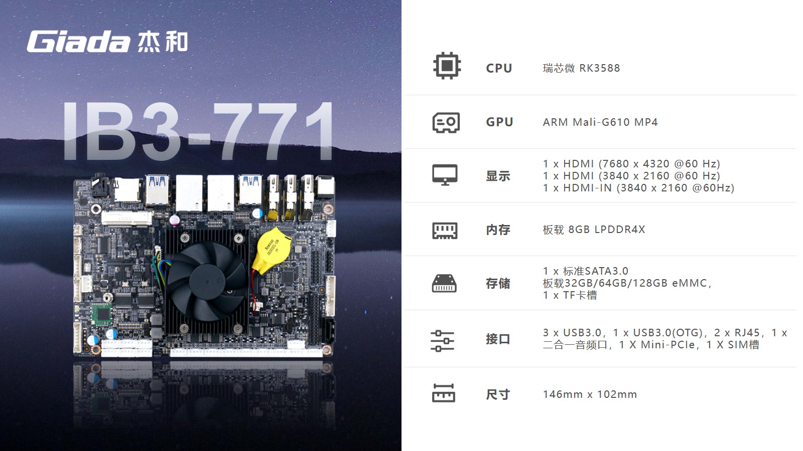 杰和科技嵌入式主板IB3-771是8K人工智能主板,拥有轻算力的它可用于机器人、边缘计算、智能NVR、智能汽车、智慧大屏、AR/VR、ARM PC、智能自助终端等领域,还可用于监控、工业、餐饮、智能交通、文娱产业等对超高清视频需求旺盛的行业;