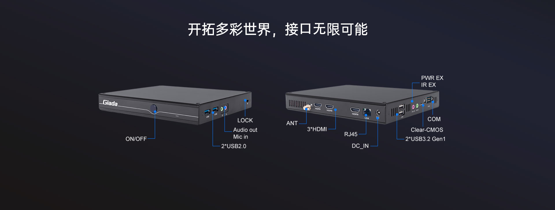支持1x RJ45,1x 全高Mini-PCIe扩展WiFi/BT/3G/4G,1x SIM卡槽